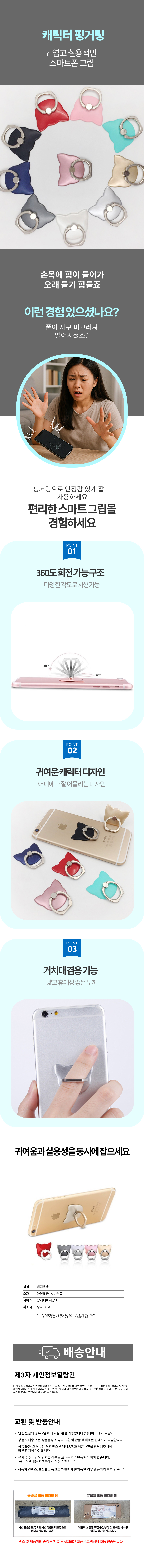 고양이 캐릭터 핑거톡 핸드폰 링홀더 거치대 그립