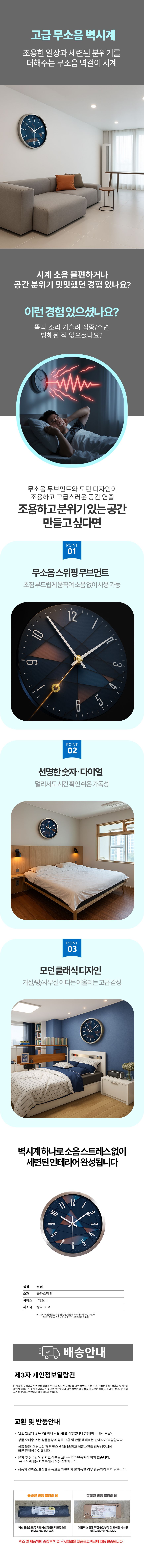 무소음 아날로그 소리없는 고급 교실용 안방 시계