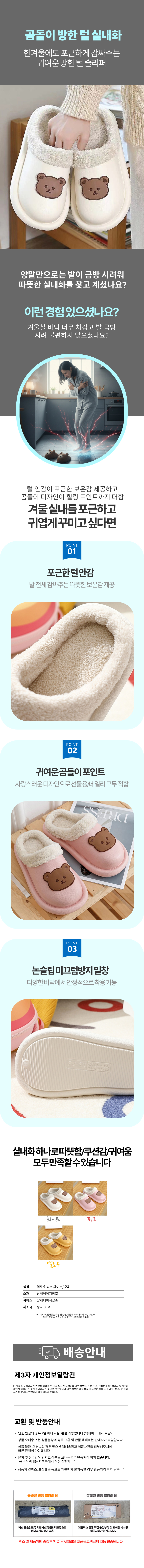 사무실 학생 거실화 회사 방수 곰돌이모양 슬리퍼