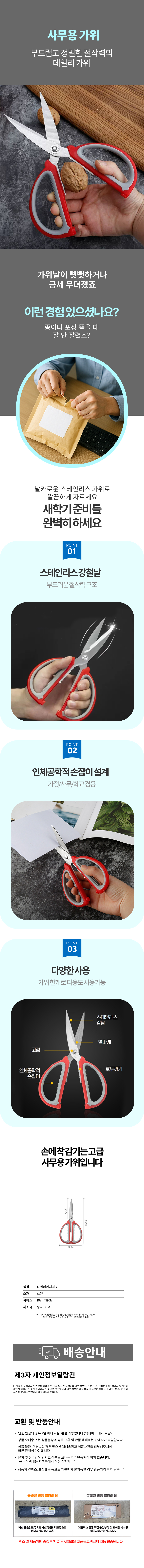 학생용 주방 포장용 택배 학용품 절삭력좋은 가위