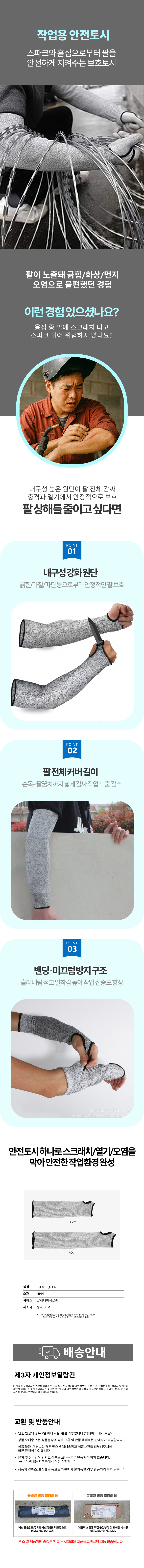 용접 안전토시 베임방지 찔림 팔보호토시 긁힘 토시
