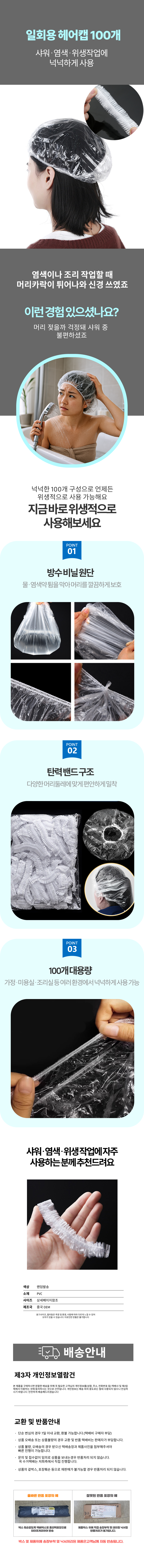 100개 염색위생모 라운드캡 캡 샤워 염색용 헤어캡