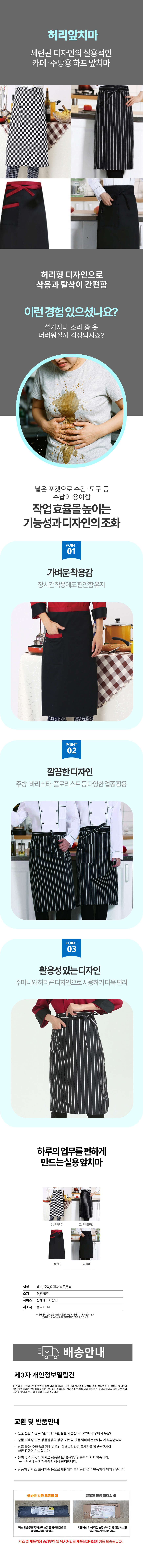 바리스타 하프앞치마 캠핑 미용 공방 셰프 앞치마