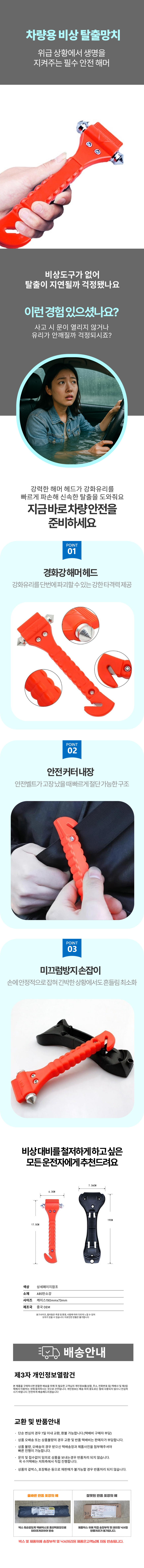 유리 차량용망치 차량탈출망치 밸트절단 망치 해머