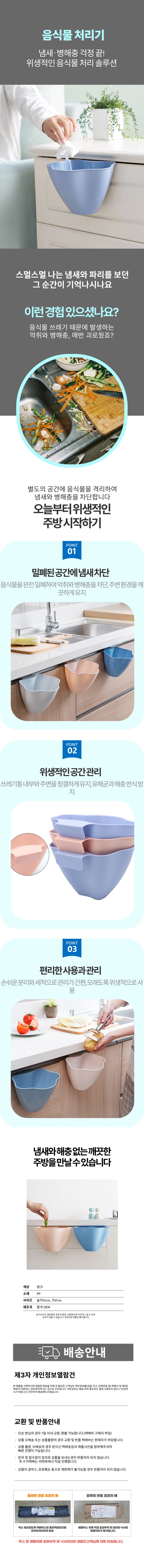 주방쓰레기통 음식물처리 싱크대 야채정리 휴지통
