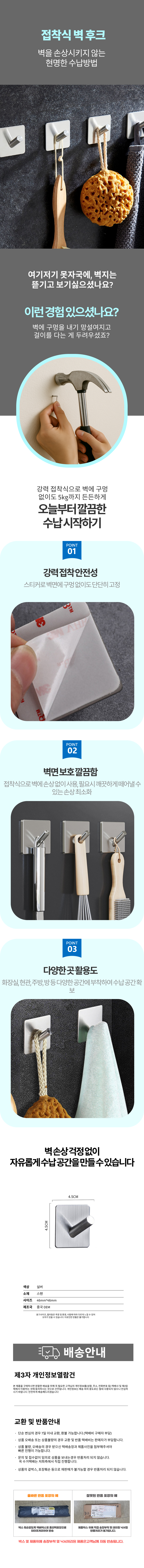 벽 현관 벽결이 욕실 붙이는 스텐 고리 타일 걸이