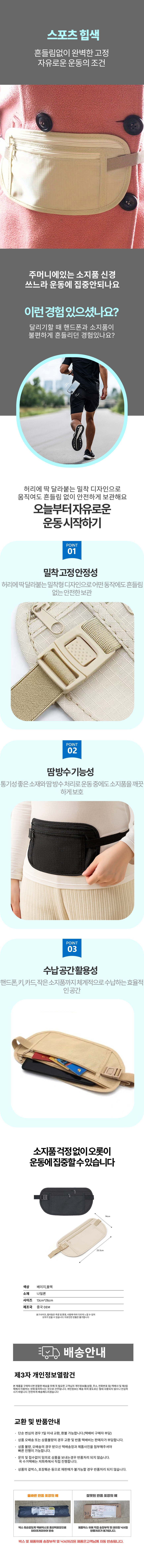 벨트 러닝 스포츠 자전거 허리가방 전대 슬림형 힙썍