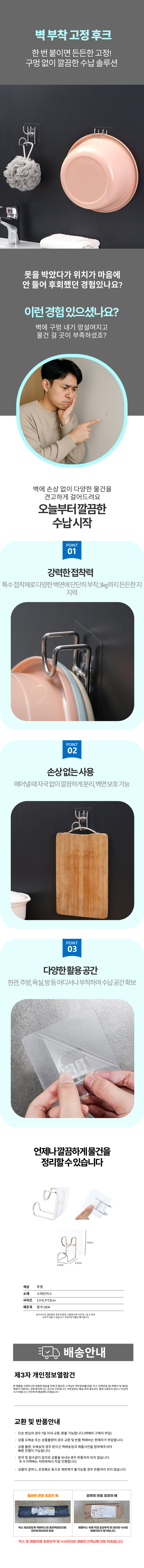 시계걸이 욕실 무타공 벽 고리 주방도구 걸이 부착