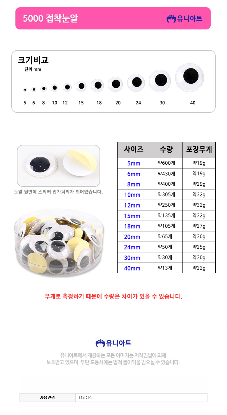 유니아트 5000 접착눈알 12mm / 약22