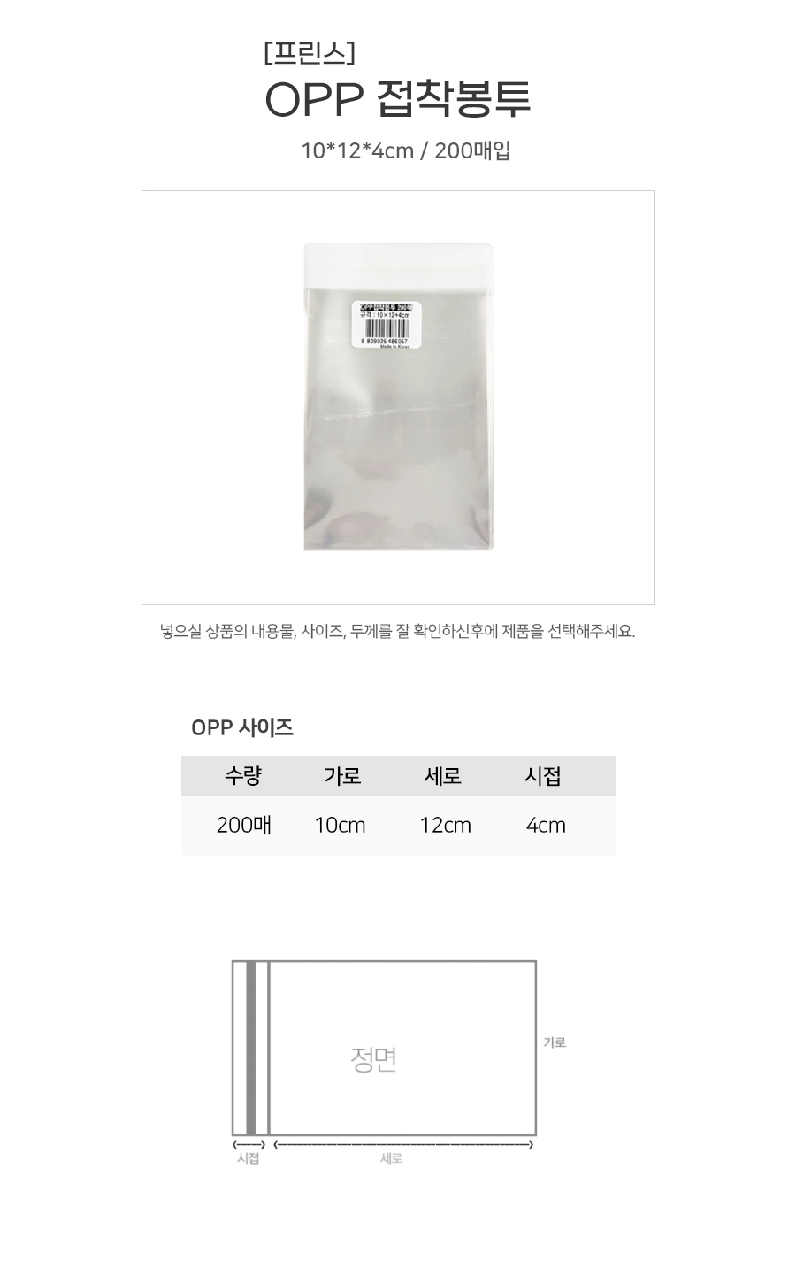프린스 OPP 접착봉투 10x12+4 200매