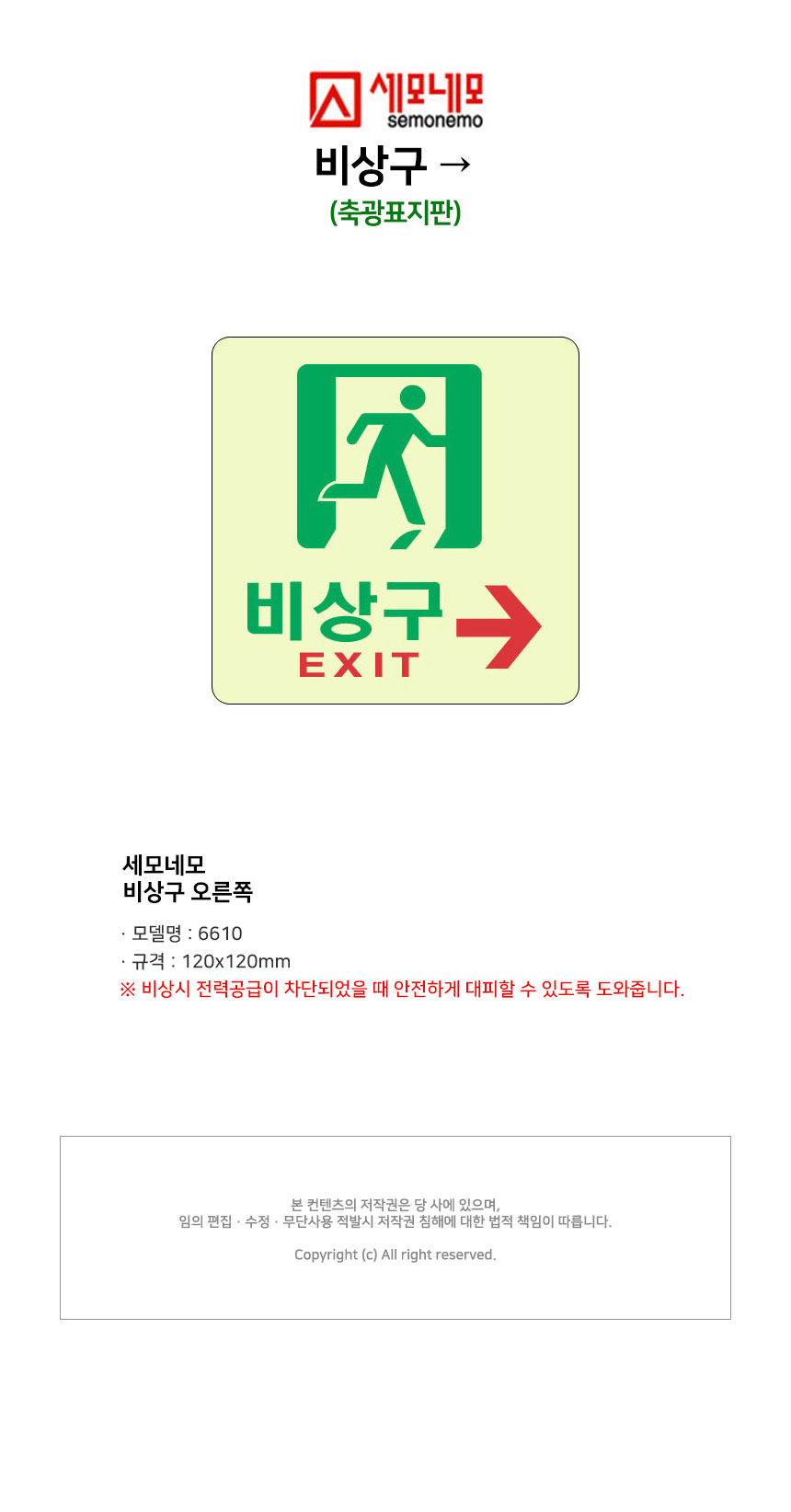세모네모 비상구 오른쪽 6610 축광 피난 대