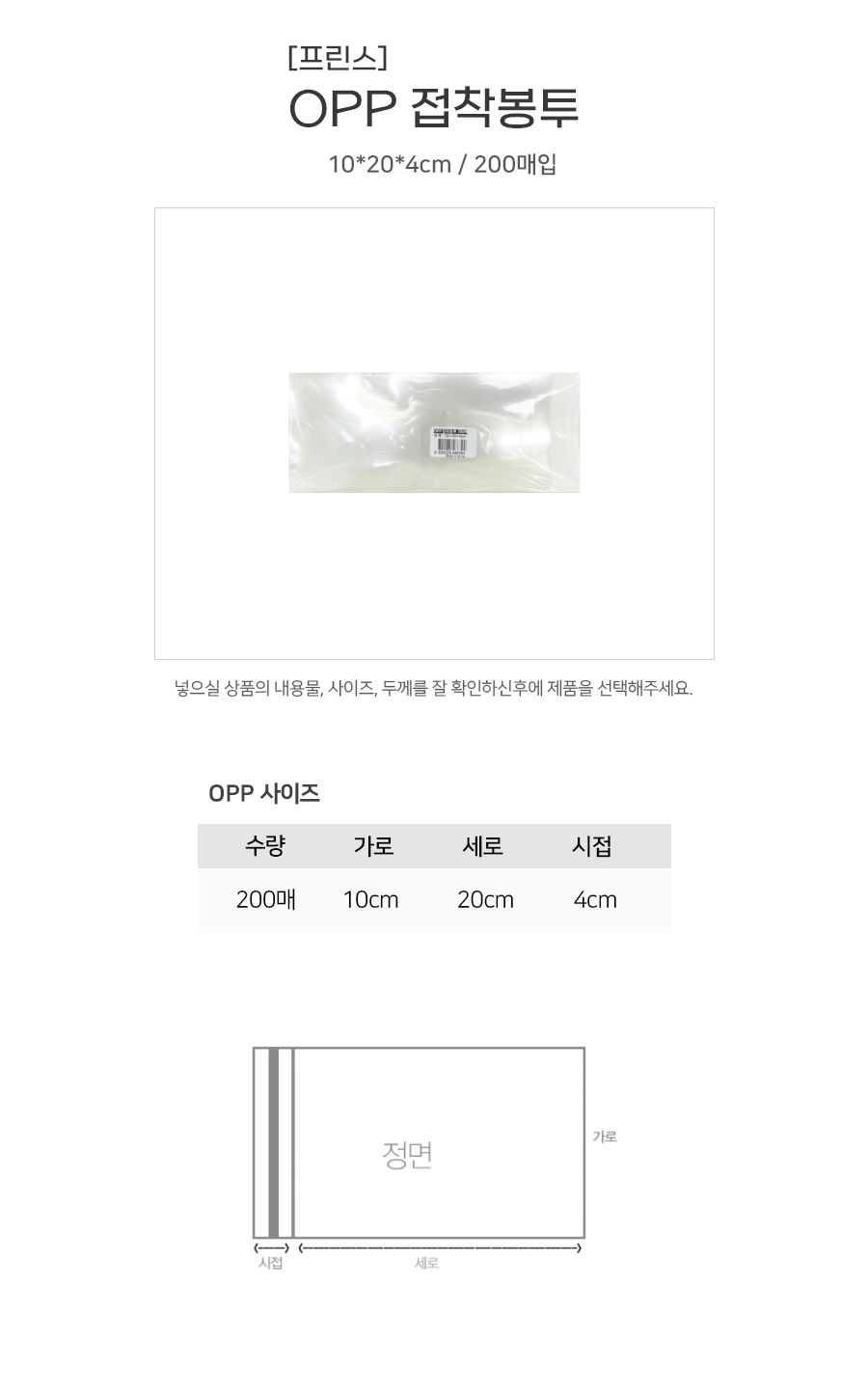 프린스 OPP 접착봉투 10x20+4 200매