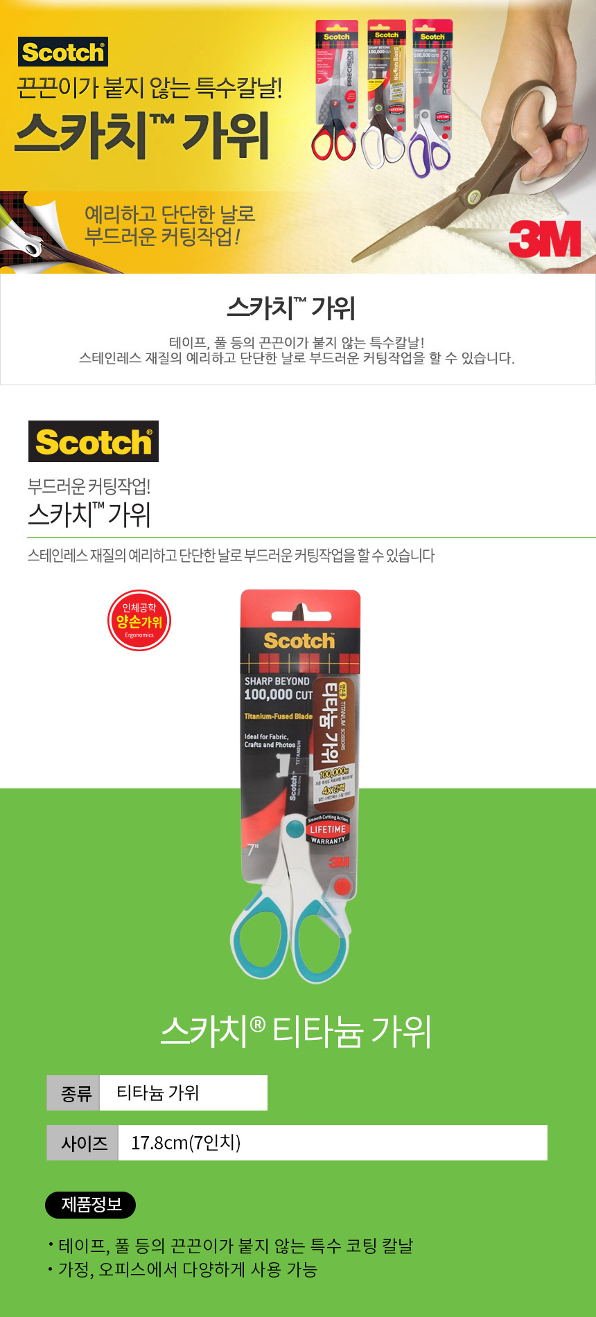 3M 티타늄 가위 7인치 양손용 택배가위 /