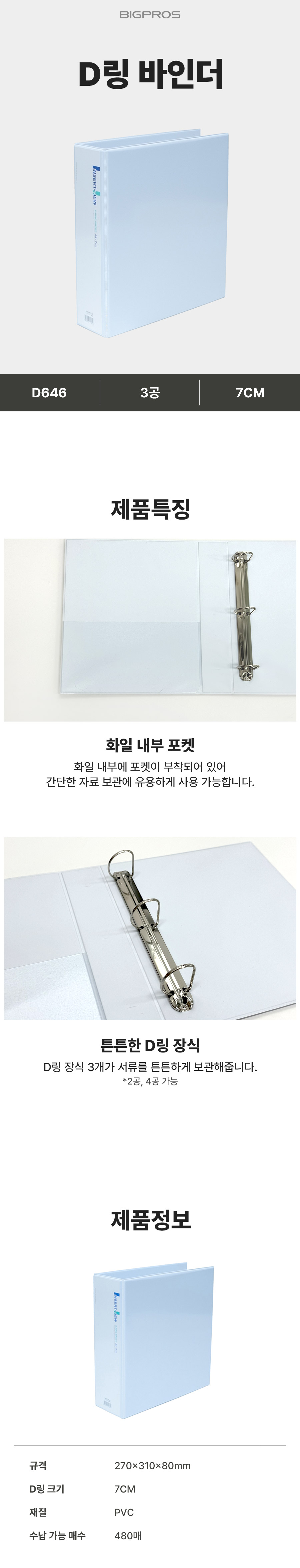 대흥 바인더 D646 3공 D링 2 백색