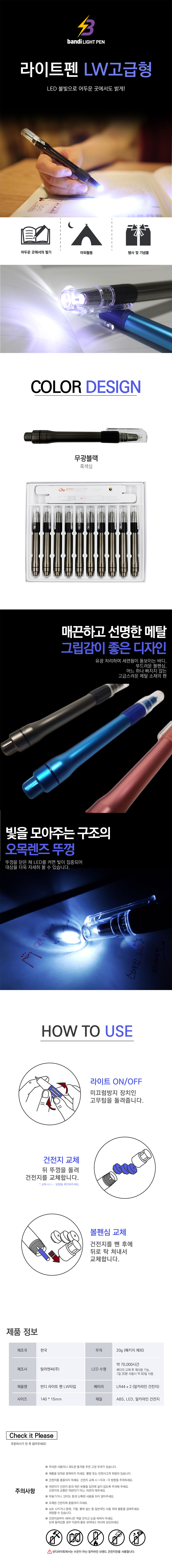 [반디] LED 라이트펜 무광메탈 0.7mm