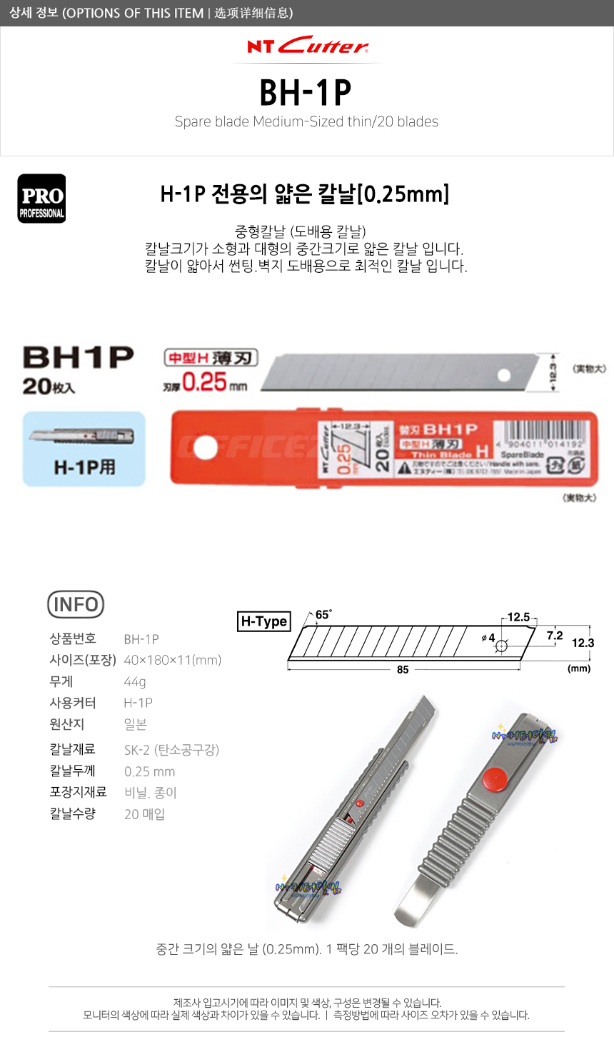 [NT커터] 커터칼날 BH-1P 0.25 /
