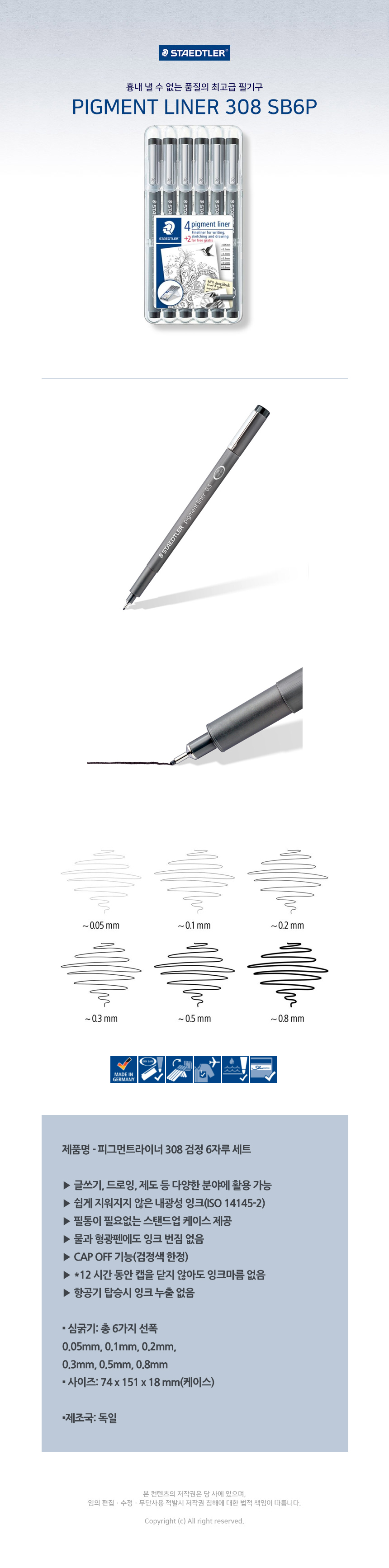 스테들러 피그먼트 라이너펜 6색 308 SB6