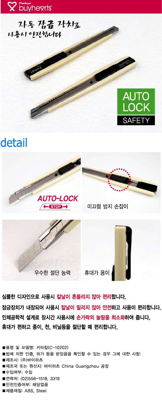 바이하츠 자동잠금커터/커터 C10202 커터칼