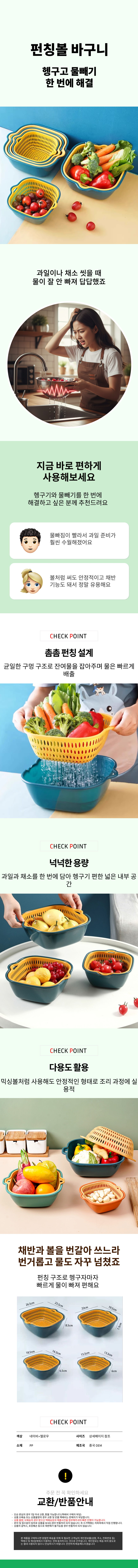 세척 채반세트 다용도 3종세트 펀칭볼 채반 바구니