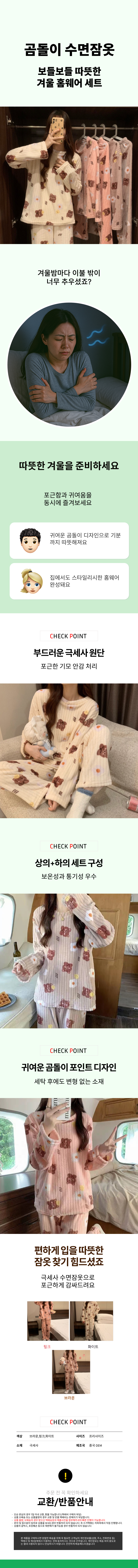 곰돌이캐릭터 여성 수면잠옷 상하세트 캐릭터 잠옷