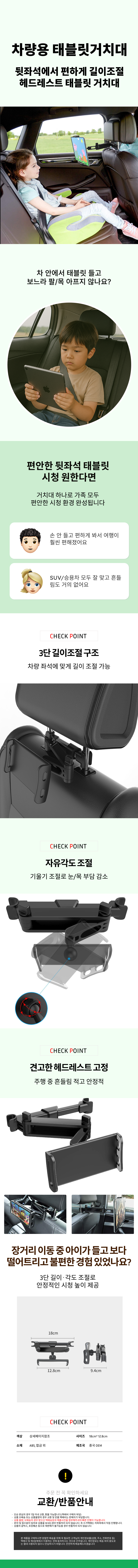 차헤드 폰거치대 뒷좌석 거치대 차량용 태블릿 3단
