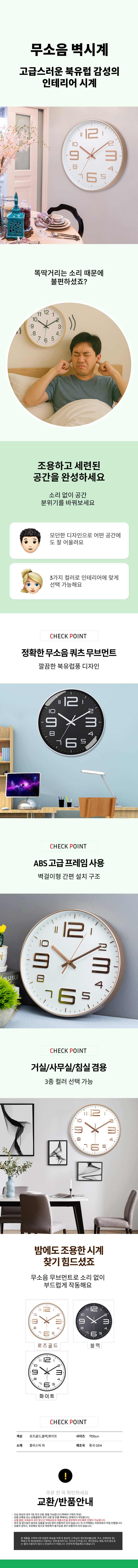 원형시계 사무실 학생 3종색상 색상 벽걸이시계 시계