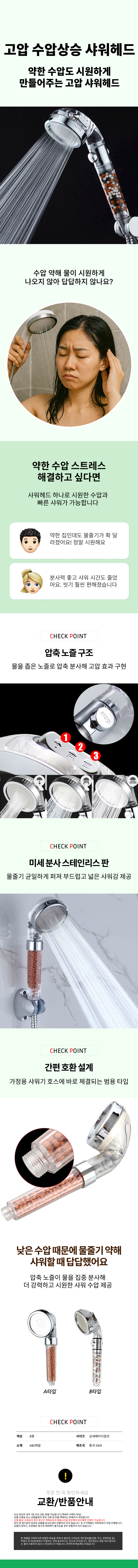 수압조절 불순물필터 교체용 녹물 샤워헤드 3단 고압