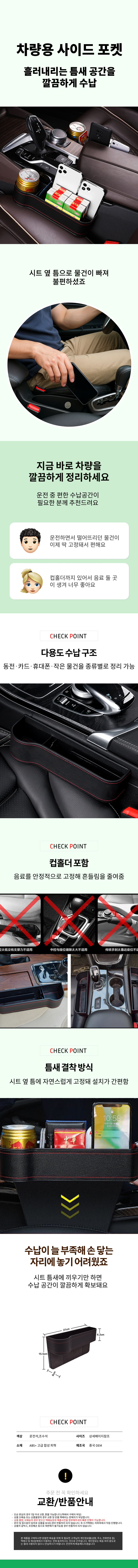 정리함 사이드수납 틈새수납함 포켓 차량용품 틈새
