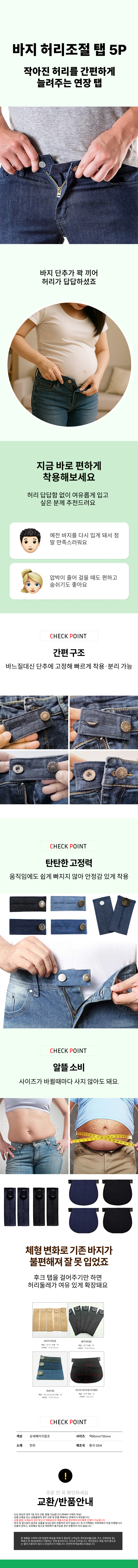 청바지 탭 자켓 수선용 5P 밴딩 수선 단추 바지 후크