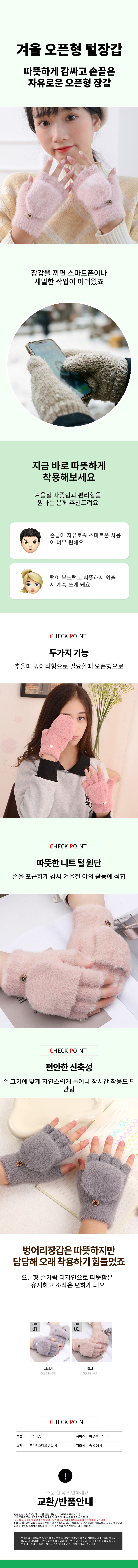 손가락 오픈 털장갑 벙어리 방한 따뜻한 보온 장갑