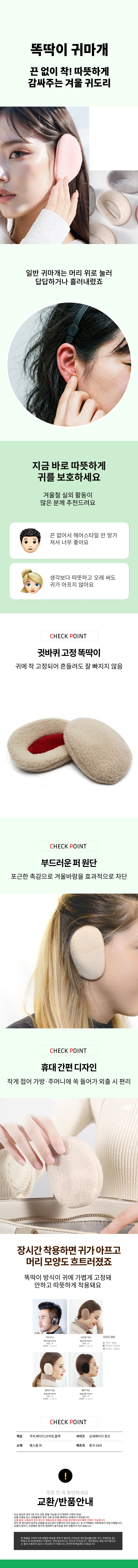 귀도리 귀마개 똑딱이 끈없는 소음귀마개 등산 여자