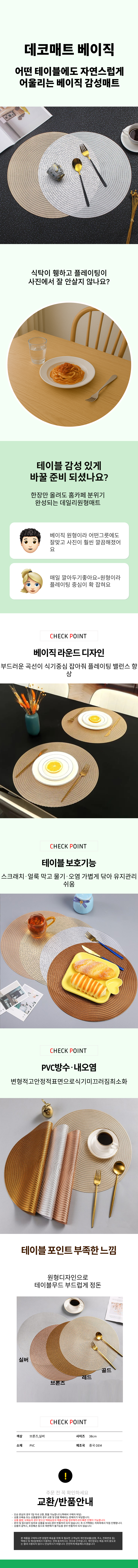 프렌치 테이블세팅 원형 테이블 북유럽풍 컵받침 매트