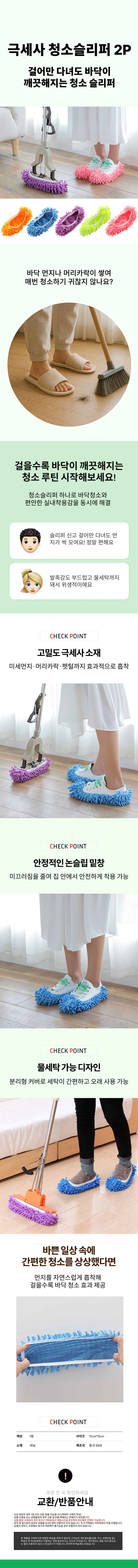 청소실내화 걸레덧신 탈부착 걸레슬리퍼 슬리퍼 2p