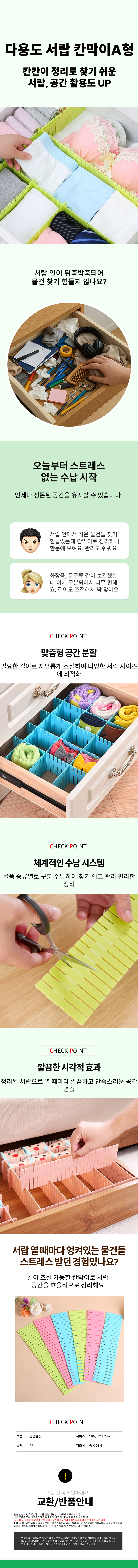 수납정리 길이 정리 서랍칸막이 서랍장 칸막이 A형