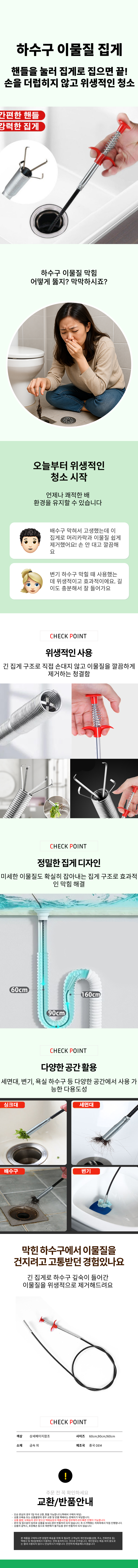 배관막힘 롱집게 스프링 하수구집게 하수구 배관 집게
