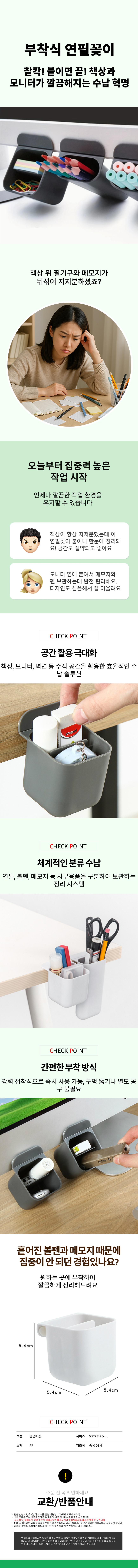 탁상 볼펜 간편한 부착식 볼펜정리함 필기구 정리함