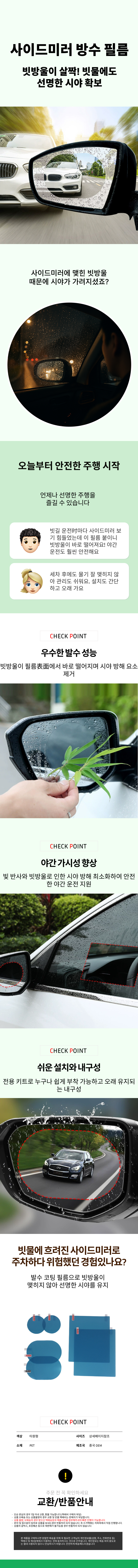 자동차 김서림방지 사이드거울 빗물방지 필름 2P