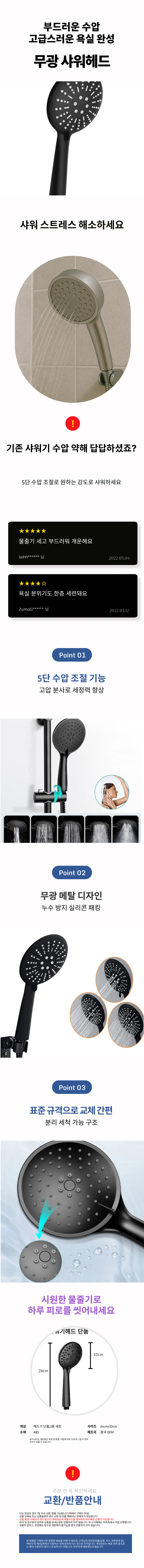원터치 화장실 회오리 샤워기헤드 교체 블랙 샤워헤드