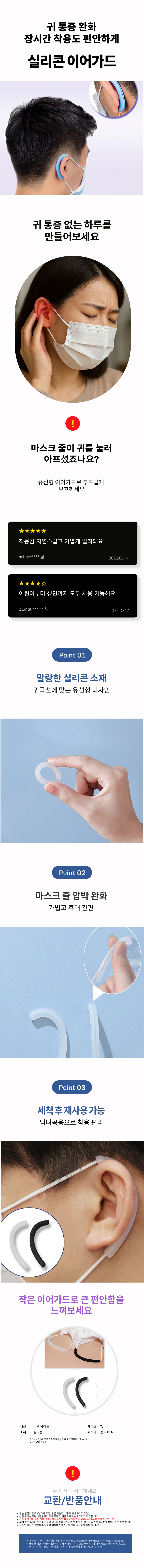 마스크걸이 귀보호대 실리콩 끈그립 귀덮개 가드