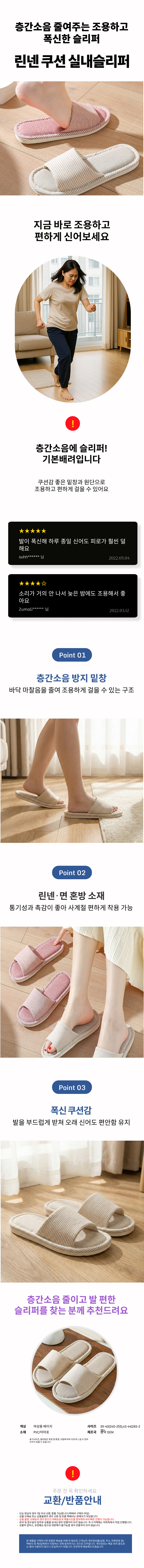 슬리퍼 실내용 푹신한 린넨 층간소음방지 실내화