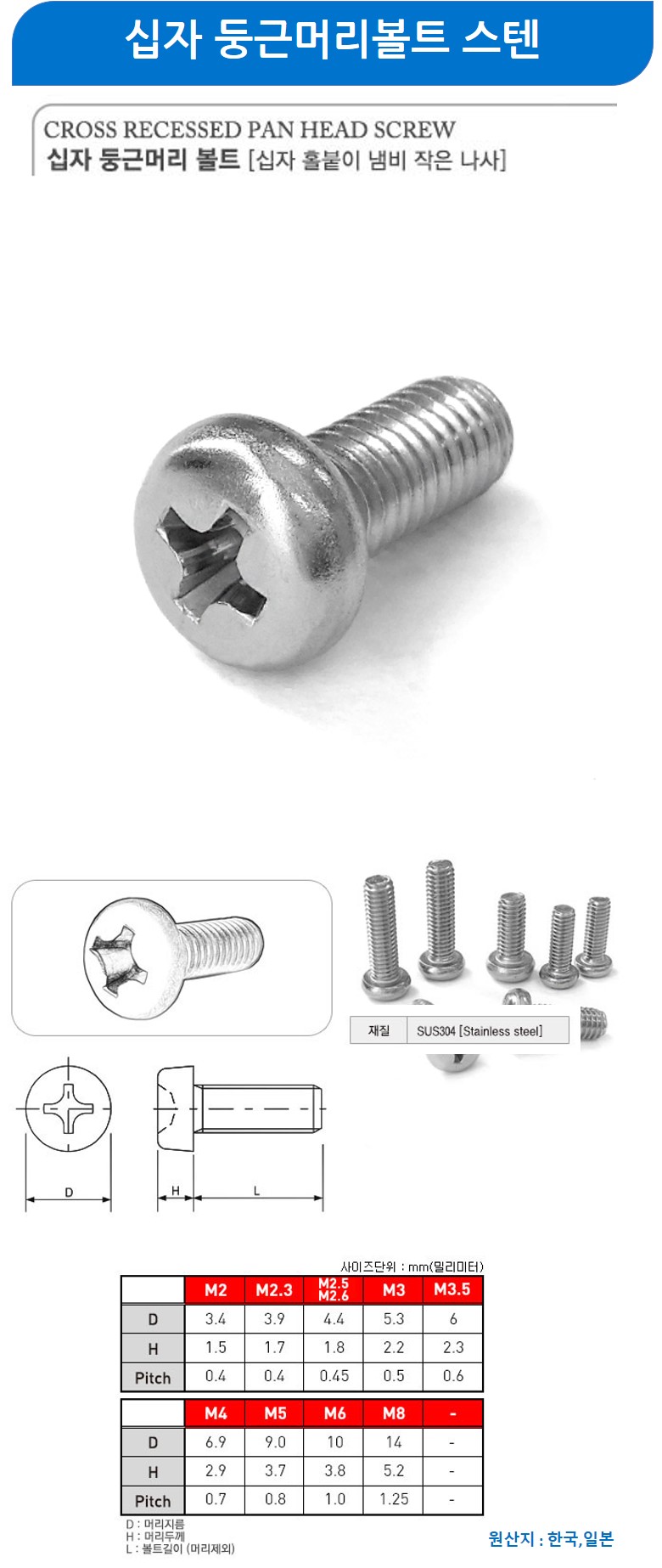 일반볼트 십자둥근머리 스텐 M5x100mm 100개