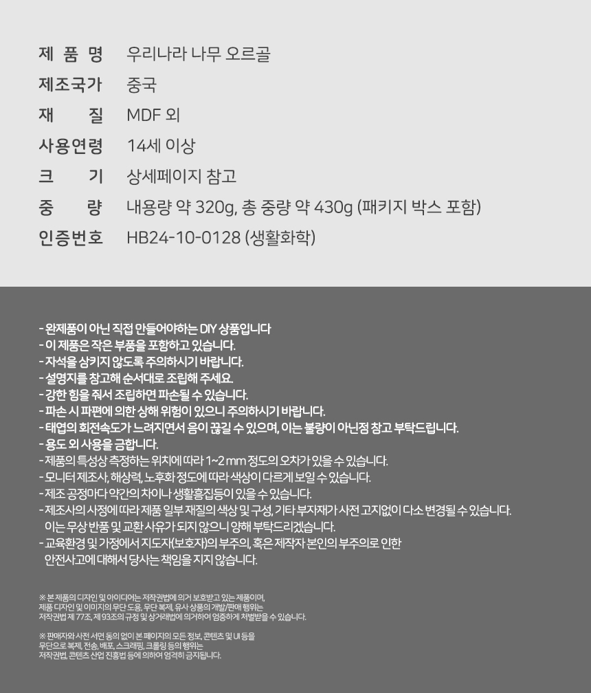 [민화샵] 우리나라 나무 오르골 DIY 숭례문 S240035A