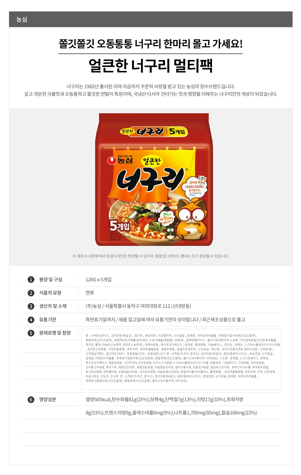 농심 얼큰 너구리멀티 120g*5