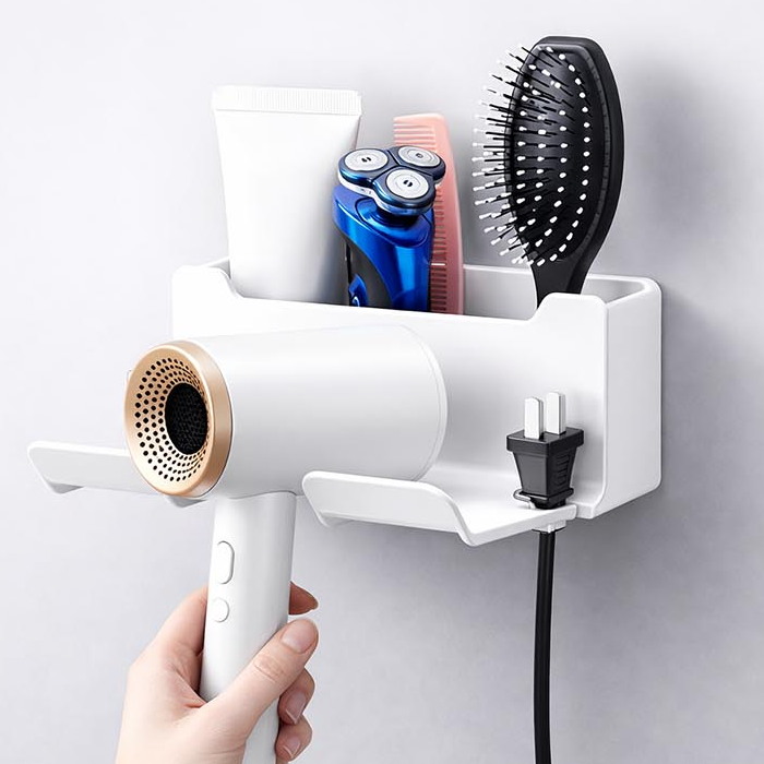 깔끔한 욕실 정리 벽 수납함 접착식 드리이기 거치대