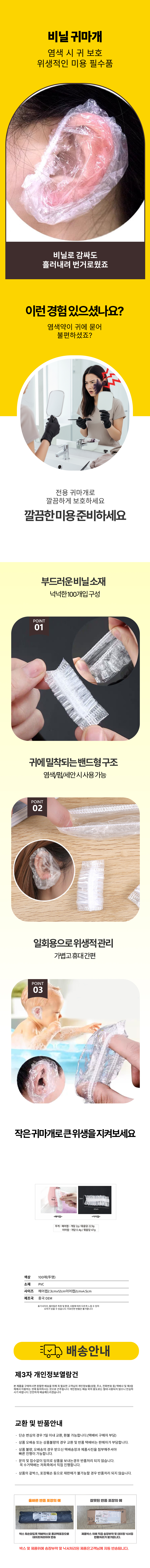 귀보호비닐 일회용 귀 대용량 헤어 벌크 귀마개 랩