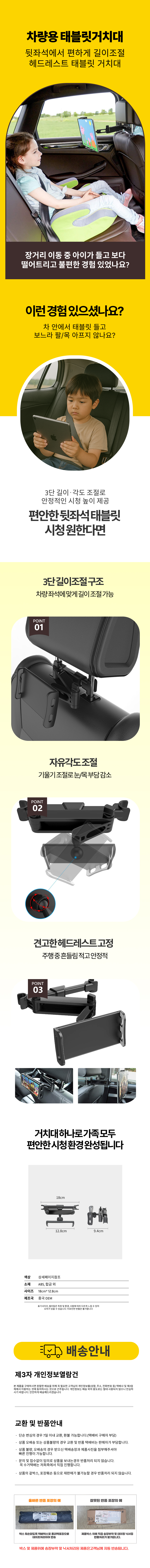 뒷자석 차량용 스마트폰 거치대 테블릿 핸드폰 차량