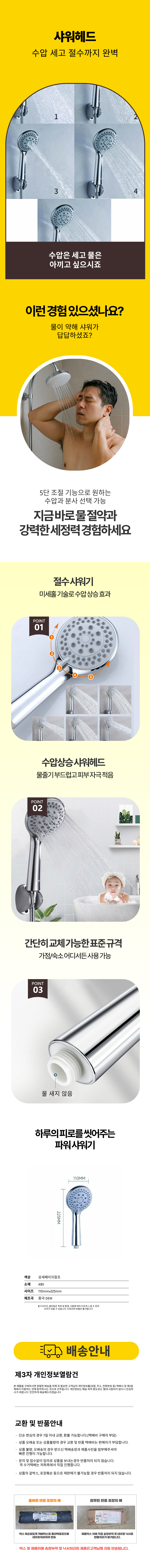 절수 고압샤워기헤드 조절 상승 수압상응 샤워헤드