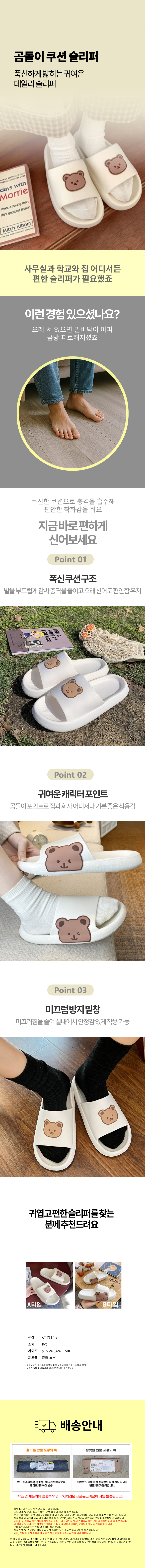 곰돌이 쓰레빠 사무실 쿠션 층간소음 푹신한 슬리퍼