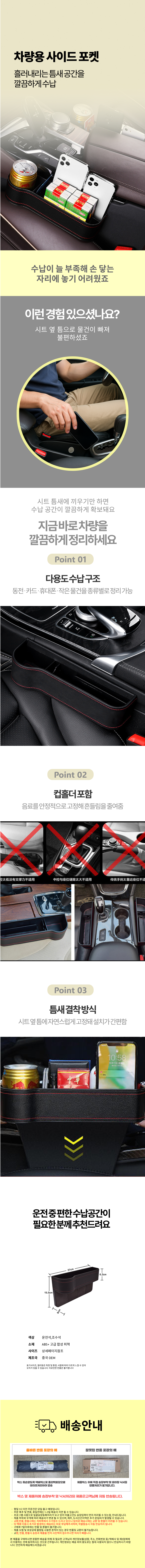 차량 컨솔박스 자동차 거치함 사이드포켓 정리함