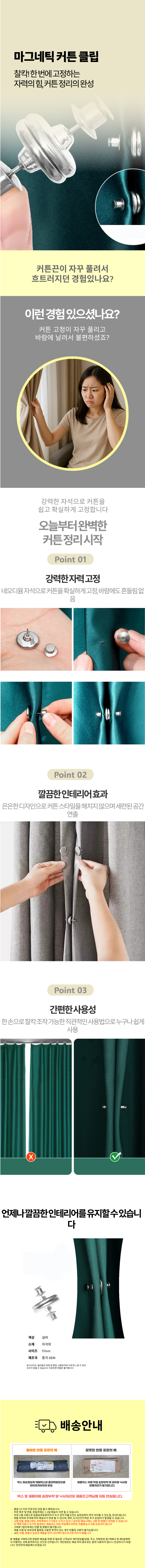 끈없는 막아주는 자석고정 커튼집게 커튼 집게 자석